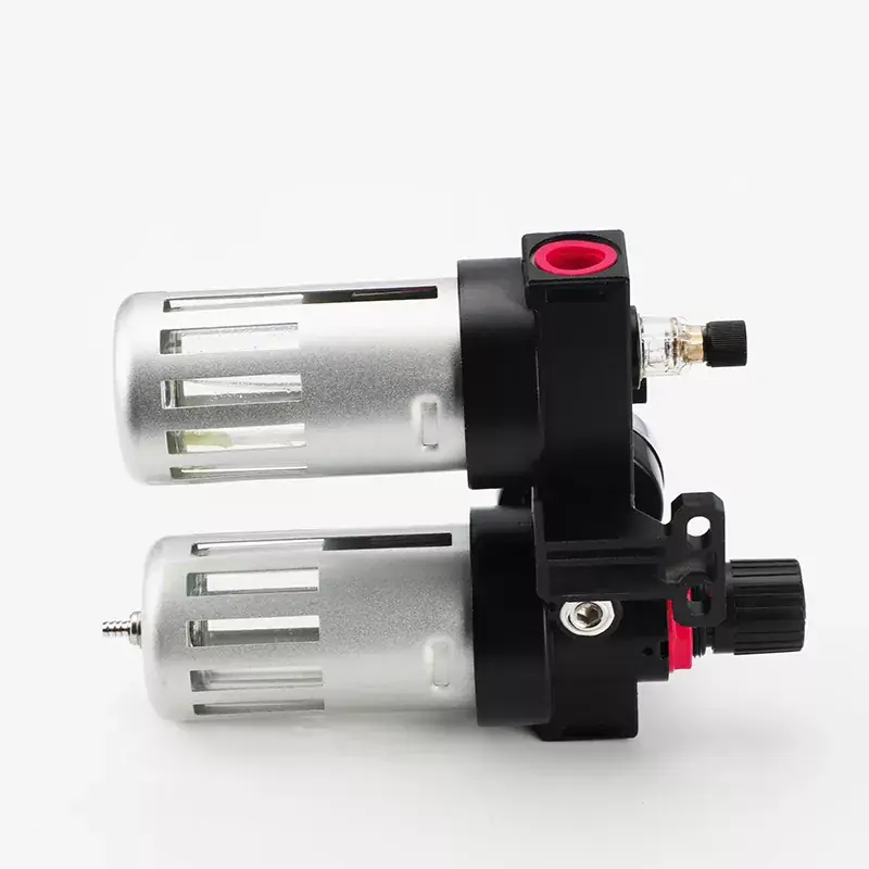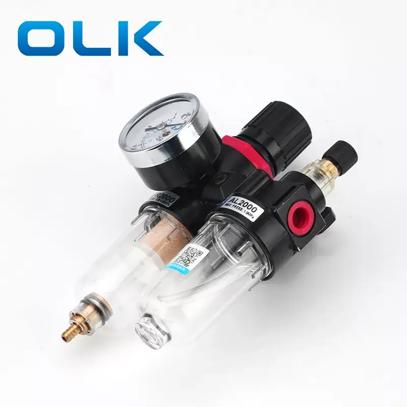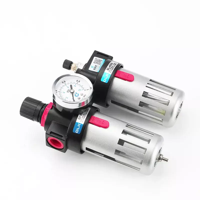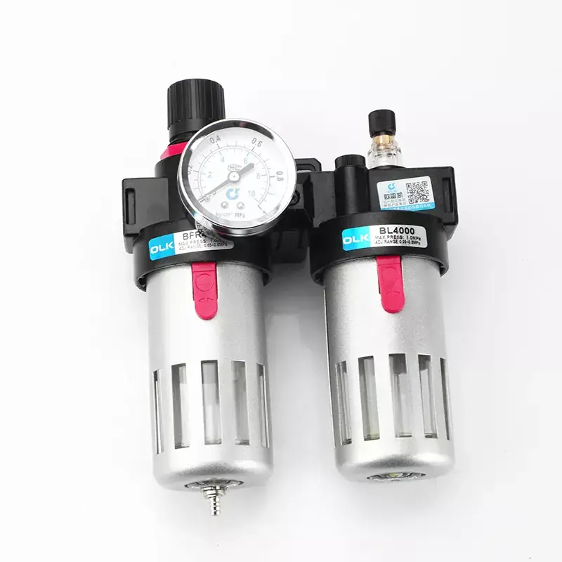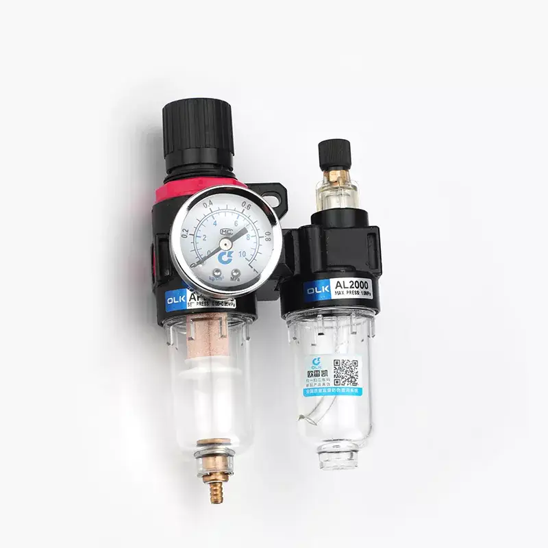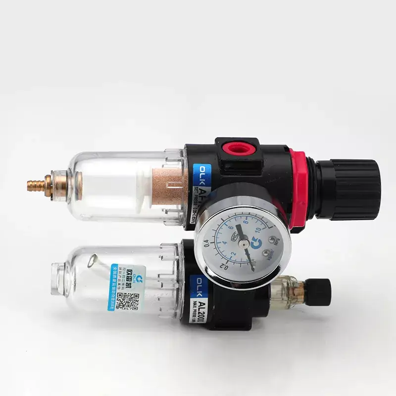 Οι μονάδες διπλής όψης τύπου Ouleikai (OLK) Airtac AFC και BFC FRL, που διαθέτουν λειτουργίες ρύθμισης πίεσης, φιλτραρίσματος και λίπανσης, έχουν σχεδιαστεί για να παρέχουν λιπασμένο αέρα. Η ελαφριά και συμπαγής δομή τους καθιστά εύκολη την εγκατάσταση και χρήση. Ο πυρήνας του χάλκινου φίλτρου ξεπερνά την ποιότητα των τυπικών πλαστικών πυρήνων, με αποτέλεσμα ελάχιστη απώλεια πίεσης και υψηλή απόδοση διαχωρισμού νερού. Το διαφανές κύπελλο δοχείου, κατασκευασμένο από υλικό υψηλής αντοχής, ανθεκτικό στη θερμότητα, αντιστέκεται στη γήρανση και εξασφαλίζει εξαιρετική σφράγιση και διαύγεια. Με μεγάλο σώμα κυπέλλου, είναι αδιαπέραστο και αεροστεγές, επιτρέποντας την άμεση παρατήρηση του μεγέθους των σταγονιδίων λαδιού.