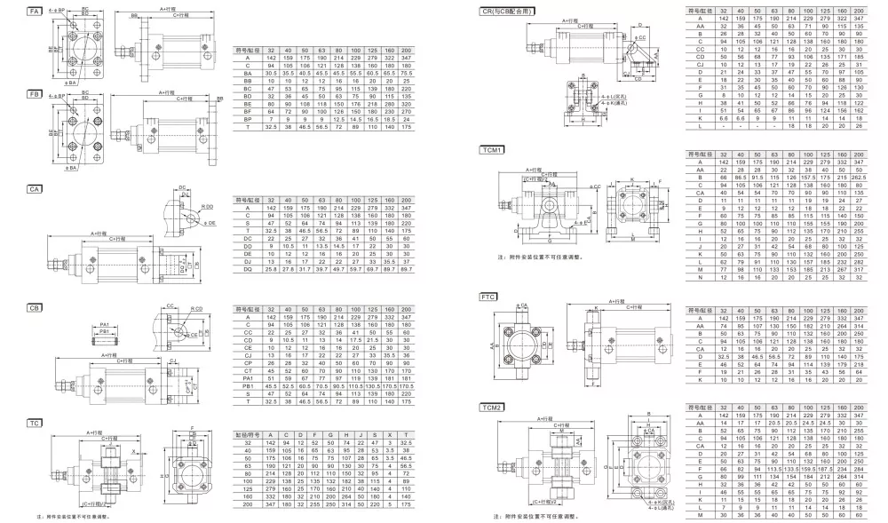 Πνευματικός κύλινδρος SU και κύλινδρος αέρα SI Δεν μπορούν να αντικατασταθούν και αξεσουάρ (CA /Ποδαράκια CB,FA-φλάντζες,TC-M, κεφαλές αρθρώσεων) δεν είναι συμβατές