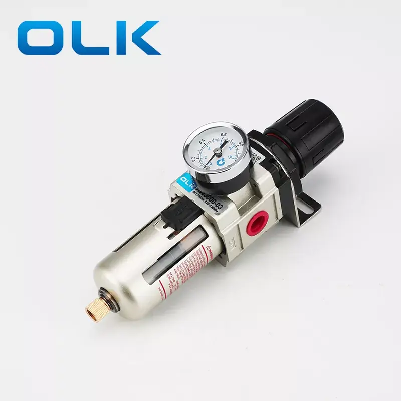 Το φίλτρο ρύθμισης πίεσης τύπου Ouleikai (OLK) SMC τύπου AW είναι σχεδιασμένο για αεροσυμπιεστές, αφαιρώντας στερεές ακαθαρσίες, σταγονίδια νερού και μόλυνση λαδιού από τον αέρα. Με αντοχή πίεσης 1,0 MPa, εξασφαλίζει σταθερή ρύθμιση της πίεσης. Το διαφανές παράθυρο λαδιού επιτρέπει την εύκολη παρακολούθηση της εσωτερικής κατάστασης λαδιού. Δύο μέθοδοι αποστράγγισης είναι διαθέσιμες: χειροκίνητη αποστράγγιση, η οποία απαιτεί χειροκίνητο τράβηγμα προς τα πάνω για αποστράγγιση (κατάλληλη για αγωγούς όπου το προσωπικό μπορεί εύκολα να ελέγξει, όπως εξωτερικά εξαρτήματα μηχανής, εξαρτήματα τραπεζιού λειτουργίας και αγωγούς όπου η χρήση αέρα κατάντη μπορεί να ανασταλεί προσωρινά). και αυτόματη αποστράγγιση, όπου η στάθμη του νερού ανεβαίνει στην κορυφή και ανοίγει αυτόματα (κατάλληλη για αγωγούς όπου το προσωπικό δεν είναι εύκολα προσβάσιμο, όπως υπερυψωμένες περιοχές, στενοί χώροι, μέρη όπου το προσωπικό σπάνια επισκέπτεται και αγωγούς όπου η χρήση αέρα κατάντη δεν μπορεί να σταματήσει) .